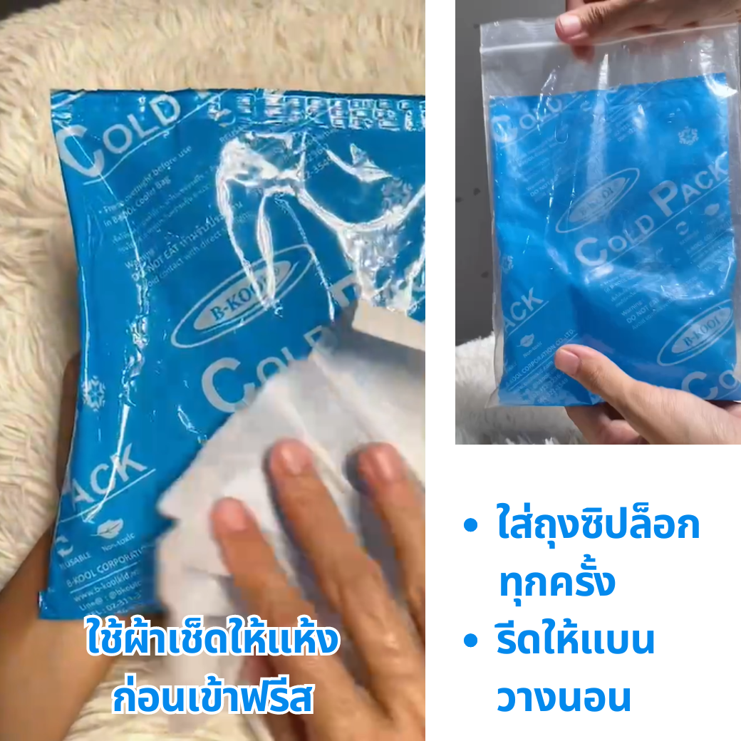 ✔ ใส่ถุงเจลในถุงซิปล้อคอีกทีเพื่อป้องกันการฉีกขาด