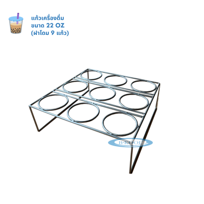 ช่องกั้นแก้ว ทำจากสเเตนเลสอย่างดี น้ำหนักเบา ไม่ขึ้นสนิม (แบบรัดขอบ เพื่อป้องกัน ไม่ให้แก้วน้ำล้ม) สามารถเก็บ เครื่องดื่ม เช่น ชา , กาแฟ , ชานมไข่มุก , น้ำผลไม้ ขนาดแก้ว 22oz (ฝาโดม) ได้ 20 แก้ว แข็งแรง ทนทาน