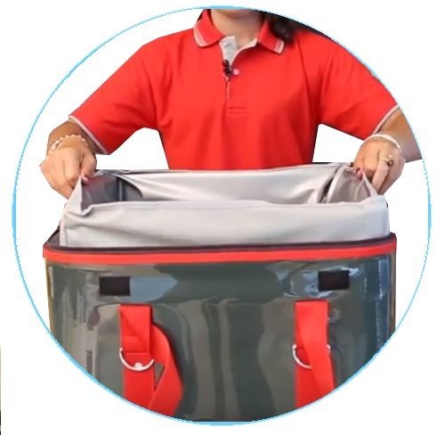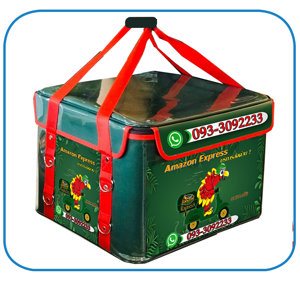 กระเป๋าส่งอาหาร กระเป๋าส่งเครื่องดื่ม ขนาด 45 ลิตร ติดโลโก้ฟรี1ด้าน ติดตั้งง่าย ไม่ต้องใช้ตะแกรง มีซิปกันน้ำและมีถุงซับด้านในถอดออกได้ กันน้ำรั่วซึม สินค้าได้รับการจดสิทธิบัตร มีหูหิ้ว มีห่วงคล้อง ยึดติดมอเตอร์ไซค์ทั้ง 4 จุด รองรับน้ำหนักได้มากถึง 30-35 กิโลกรัม