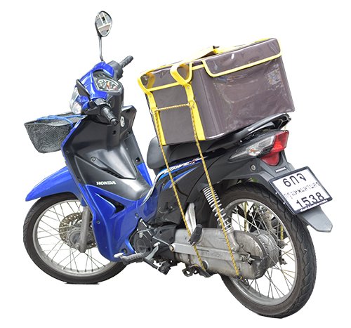 • มีห่วงสำหรับรัดติดมอเตอร์ไซค์ 4 ห่วง ติดตั้งง่ายไม่ต้องใช้ตะแกรง