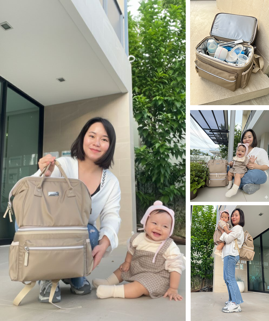 สำหรับคุณแม่ที่ต้องปั๊มนมนอกบ้าน หรือปั๊มนมตอนกลางวันสามารถเก็บกรวยปั๊มนมแบบไม่ถอดแยกได้ 2 กรวย + ขวดนม 8oz ได้ 6 ขวด (มีพื้นที่วางสำหรับน้ำแข็งเทียม เจล Cold Pack ได้อีก 2 ชิ้น สำหรับเก็บความเย็น 12 ชม.)หลังจากเลิกใช้เก็บน้ำนมแม่แล้วสามารถใช้เป็นกระเป๋าคุณแม่ สะพายหลัง อุ้มพาลูกเที่ยว แบบ Handfree เลยจ้า ด้านล่าง นอกจากเก็บความเย็นของนมแม่แล้ว ยังสามารถ เก็บโยเกิร์ต นมสด น้ำผลไม้สด หรืออาหารเด็กเมื่อต้องเดินทางได้อีกด้วย ด้านบน สามารถ ใส่ของใช้ส่วนตัว