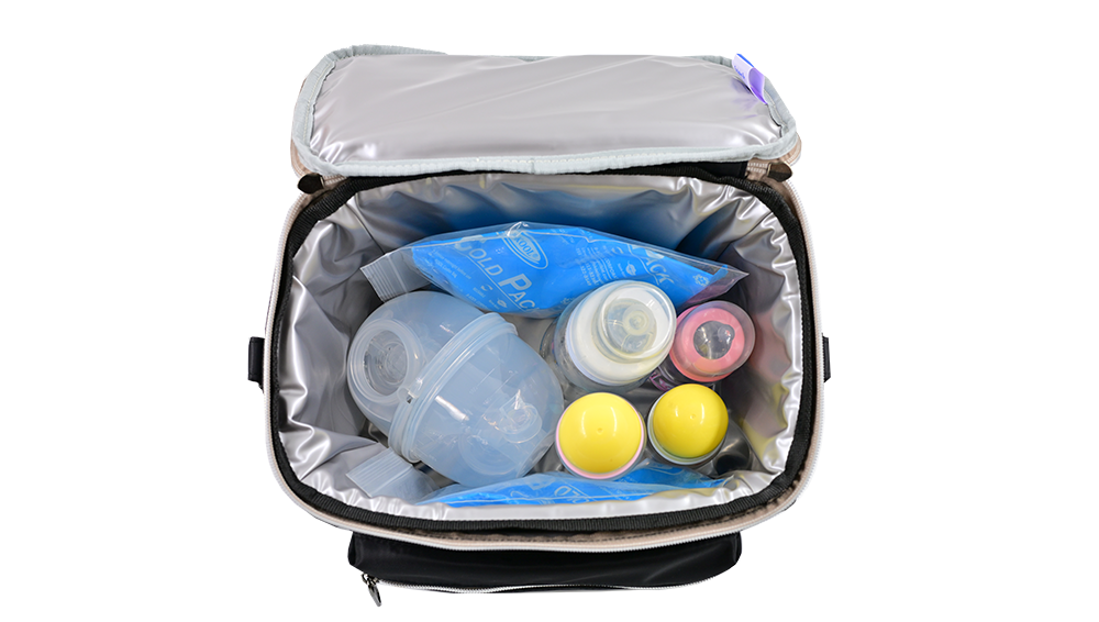 สามารถเก็บเครื่องปั๊มนมขนาดเล็กได้ เช่น Medela Swing maxi/ Medela Freestyle/ Youha รุ่น YH-8004/ Super Mama