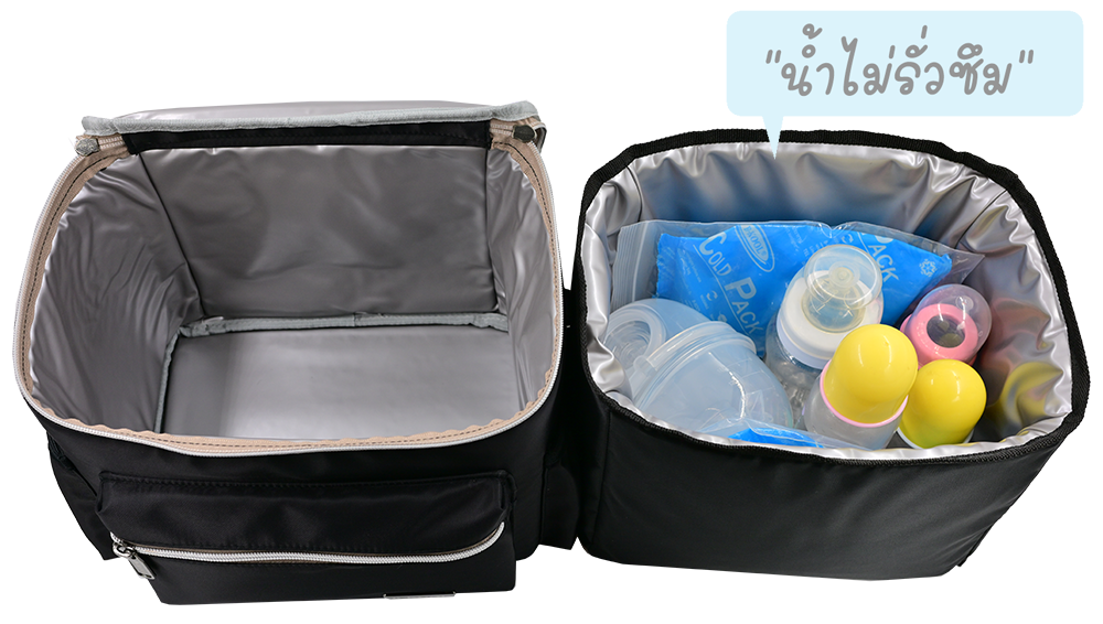 สามารถถอดออกมาทำความสะอาด ได้ เพื่อการทำความสะอาดที่ง่าย เมื่อมีน้ำนม หรือ อาหาร หกในกระเป๋า