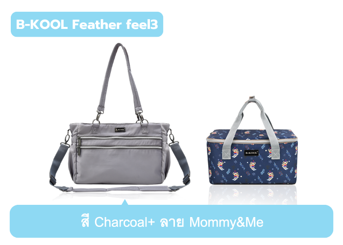 เป็นการ จับคู่ mix & match ระหว่าง B-KOOL feather feel 2 กับ petit ทำให้ ได้ "กระเป๋าใส่เครื่องปั๊ม และสัมภาระคุณแม่ที่มีช่องเก็บของ ถึง 19 ช่อง และเก็บความเย็น ได้ถึง 24 ชม."