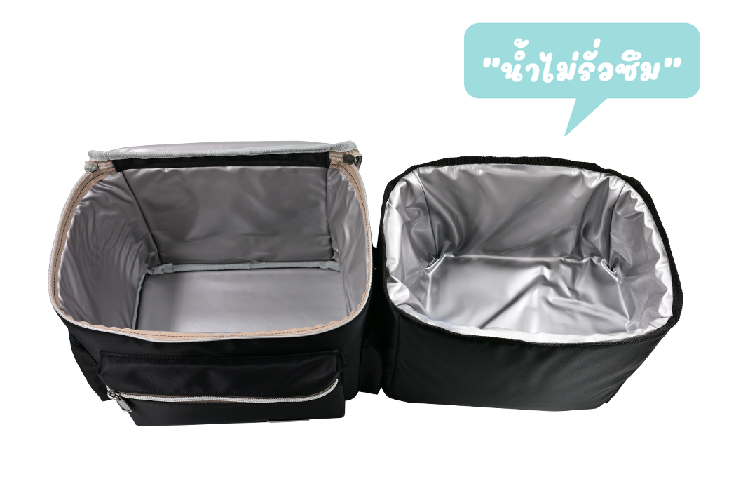 สามารถถอดออกมาทำความสะอาด ได้ เพื่อการทำความสะอาดที่ง่าย เมื่อมีเครื่องดื่ม หรือ อาหาร หกในกระเป๋า